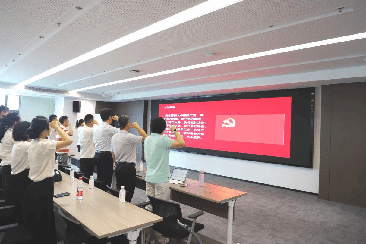活动伊始,全体党员庄严举行重温入党誓词仪式。